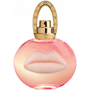 Дизайн флаконаФлакон выполнен из прозрачного стекла, на котором выгравированы губы. Стоппер для распылителя выполнен в виде изогнутого золотого кольца, изящно украшенного сверкающими стразами. Дизайн флакона очень девичий и праздничный.